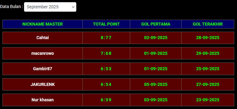 PERINGKAT MASTER LOMBA HK 10 LOBANG